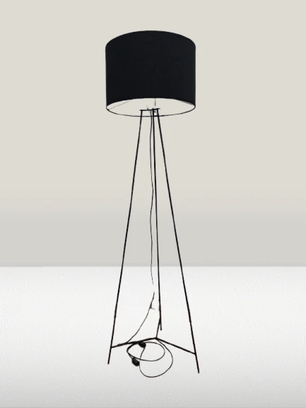 La lámpara IRON M01 combina elegancia y simplicidad. Su estructura en hierro negro mate y pantalla cilíndrica de lino blanco crea un contraste moderno y sofisticado.